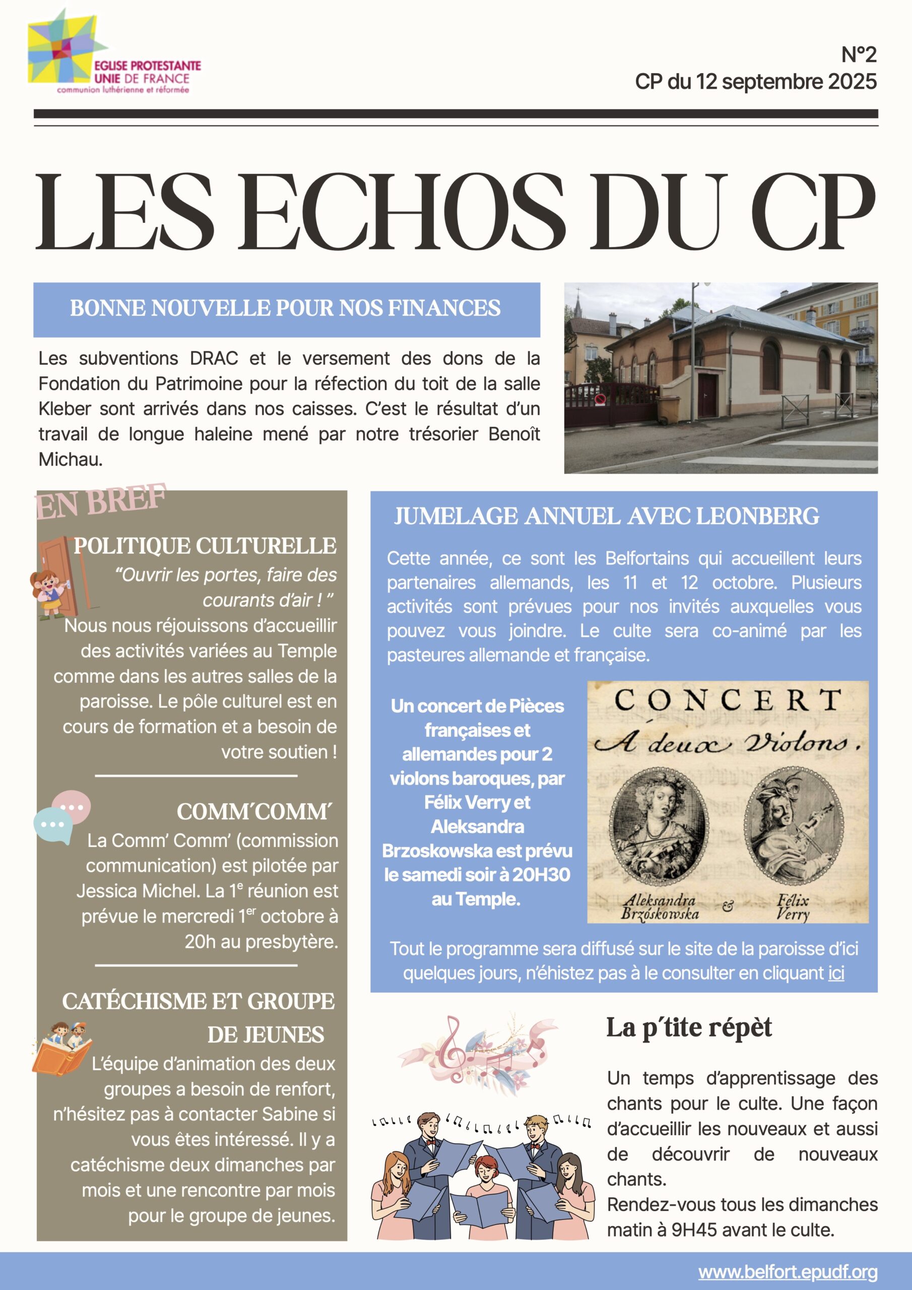 📰 Les Échos du Conseil presbytéral – 12 septembre 2025